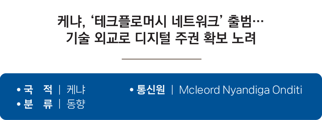테크플로머시 네트워크는 외교관, 학계, 민간 기업, 시민사회가 함께 참여하는 다자 협력 구조다. 이 플랫폼을 통해 케냐는 데이터 이전, 디지털 과세, 인공지능 시대의 지식재산권, 신흥 기술 표준 등 글로벌 의제에 대해 체계적이고 주도적인 목소리를 낼 수 있다. 나아가 나이로비를 아프리카 디지털 외교의 중심지로 자리매김하고, 아프리카연합(African Union, AU)과 아프리카자유무역지대(African Continental Free Trade Area, AfCFTA)를 통한 대륙 차원의 디지털 정책 조율도 촉진할 계획이다.