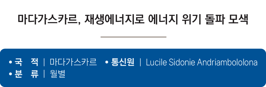 풍부한 일사량과 수력 자원을 바탕으로 한 마다가스카르는 아프리카의 ‘청정에너지 허브’로 부상할 잠재력을 지니고 있다. 재생에너지 확대와 민관 협력이 안정적으로 정착된다면, 마다가스카르가 에너지 자립과 지속가능한 성장을 동시에 달성할 수 있을 것으로 기대된다. |